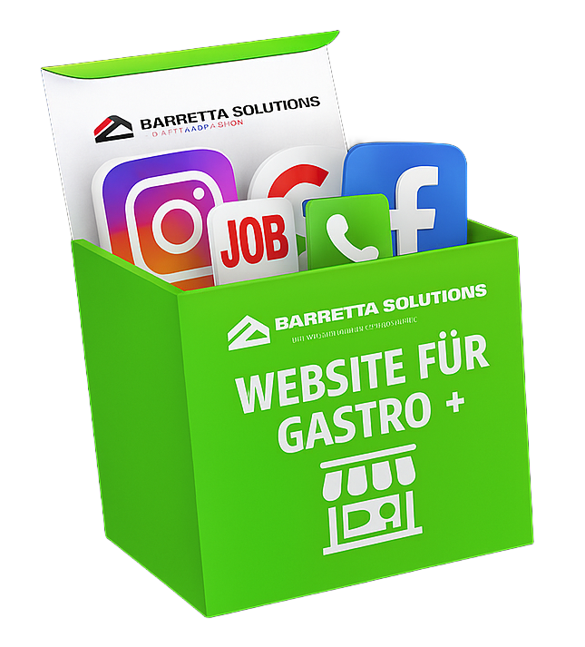 Wichter Hinweis zum Kartenzahlungsterminal: Das Kartenzahlungsterminal*⁴ ist ein optionales Zusatzangebot und nicht verpflichtender Bestandteil des Website-Vertrags mit BARRETTA SOLUTIONS. Die Buchung erfolgt ausschließlich auf Wunsch des Kunden und ist an einen separaten Zahlungsdienstleistungsvertrag gebunden. Ohne Buchung des Kartenzahlungsterminals entstehen keine Mietkosten.