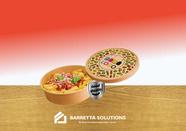 Pasta-Box mit 2 Belüftungslöcher garantiert Ihren Gästen WAHRE QUALITÄT & LECKERE PASTA - (Logodruck nur auf Pasta-Box Deckel).